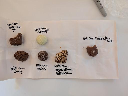 I've been going to Sweeties for years now and it's always a treat. When you walk in you can smell the chocolate! They have quite a large selection of chocolate and candy, especially for being in a small space. Lots of options for dark chocolate, and the young woman told me the owner has started making nearly all of the chocolates that have nuts in them, as well as some vegan chocolates!