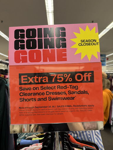 When I asked at the register, the manager came over and told me that the sandals cost exactly what was written on the red tag and that they were already discounted. However, according to the promotion, this tag should still qualify for an extra 75% off. The manager left without really speaking with me. When I asked for her again, she said there was nothing she could do because some items are not included in the promotion. I explained that the sign had no exclusions listed, but she walked away to another register and then into the sales floor without finishing the conversation.