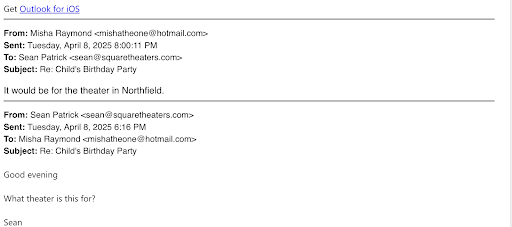I am writing to formally express my deep disappointment regarding the mismanagement of my sonâs birthday party, which was scheduled at the Tilton 9 Theater in Northfield. I had booked his party a month in advance through Sean, who was initially very helpful and thorough in addressing all of my questions. I reconfirmed all details with him and was assured that everything was set for the event. However, upon arriving at the Tilton 9 Theater at 9:30 a.m. on the day of the party, I was shocked to find the venue closed. I immediately began calling and emailing, trying to understand why no staff members were present. After waiting outside with my guests for 45 minutes, I finally received a call from Sean at 10:15 a.m. I explained that we were outside the theater, waiting. What followed was both frustrating and unprofessional. Sean claimed that my party was scheduled at the Rio Grande location and insisted that he was looking at the email correspondences that confirmed this. He accused me of booking the party at the wrong location instead of taking ownership over his error. I told him that this was absolutely incorrect and asked him to recheck the email correspondences. I then forwarded a screenshot of our email exchanges, which clearly showed that the party was supposed to booked at the Northfield location. By that point, my guests and I had been waiting for over an hour. I decided to leave around 10:45 a.m., as the situation had become frustrating. Sean called me again approximately 10 minutes later, but at no point did he take responsibility or offer an apology for the confusion and delay. Instead, he stated that I could come back for the 12:10 p.m. movie that was not going to be private. Unfortunately, by then, many of my guests had already left, and the opportunity to celebrate as I had intended had been lost. This experience was not only disappointing, but also deeply embarrassing. What was supposed to be a joyful day for my son and our guests turned into a stressful and frustrating ordeal. I am extremely dissatisfied with the service I received. I then called Janet Goldstein several times and she left me a message that a Sean Campbell would call, but he hasn't. It has been several weeks. I was also told that the manager of the theatre would call me and do something for me for my inconvenience and that NEVER occurred. Now I am leaving a review so that others are aware. Needless to say, I will NOT be rebooking any future events with them, nor will I recommend Tilton Theatre to others....