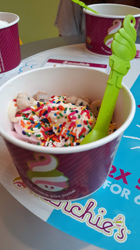 Read moreI recently visited this Menchies, excited to treat myself to some self-serve frozen yogurt. I meticulously built my own cup, feeling quite proud of my efforts. When I got to the credit card reader, it prompted me to leave a tip. Naturally, I thought tipping 25% would reflect the stellar service I provided myself and grant me an immediate 25% discount off my bill. I mean, who wouldn't tip themselves for such an outstanding job?