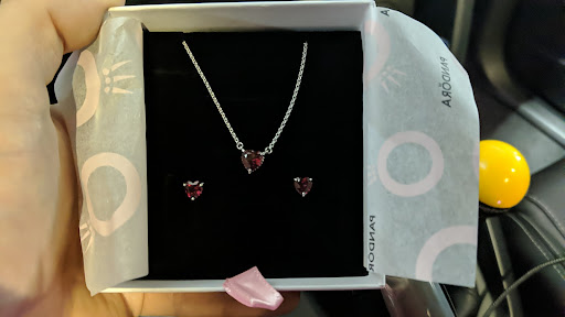 Alexandra was SO nice and welcoming, very warm and helpful and loved what she did. Made you feel good to be in the store. She pointed out there was a matching earring and ring set with the necklace, which I did not know about. Picked the earrings up too, as I already got the matching ring about a year ago (lucky coincidence!). She even put them nice and presentable in a box for me.