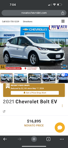 I wanted to share my experience with Novato Chevrolet. We all know that car dealers are masters at Bait and Switch, but this experience was a new low for me. Here's my story: I found a car I was interested in and contacted the dealership. A person promptly called me back and left a message. I called back and also left a message. As no one called me again, I reached out and talked to another salesperson. Red flag one: the car listed was a Chevy Bolt with a price significantly lower than comparable vehicles. Red flag two: I was told the car had been on their lot for 30 days. These cars are very popular, so naturally, I was suspicious.