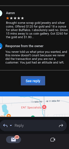 Read moreBrought some scrap gold jewelry and silver coins. Offered $120 for gold and 18 a ounce for silver Buffalos. I absolutely said no. Drove 15 mins away to us coin gallery. Got $260 for the gold and $1.80 under spot per silver coin ($28.23). I understand people have a business to run and need to make money. If you have no idea what you have, I strongly recommend going elsewhere. It took me 5 mins to Google another place and make double what i was offered.