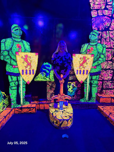 Read moreThis is a decent little mini golf course. The glow effects are cool and this is fun to play with friends, plus it's good if you want to play putt putt golf in the winter as it's indoors. Unfortunately, I'd say half of the courses are variants on the same design and they could stand to vacuum a bit - there's lots of pieces of glow paint on the ground. Nothing that will ruin the experience, but it is something I noticed. Also some of the holes in the courses are indented from the playing field, meaning you'll lose shots that you should have made. The $13 per person admission is a steep price though - go to Groupon and you can get admission for $10 a person. Oh, and you don't get a score card - you have to download something online to keep track of points, which is honestly really cheap. Those little pencils and pieces of paper can't cost that much.