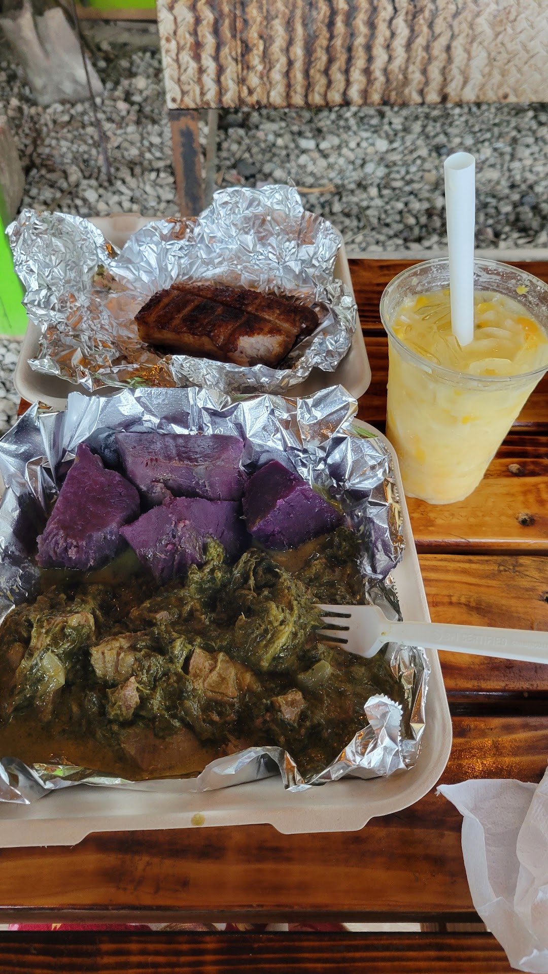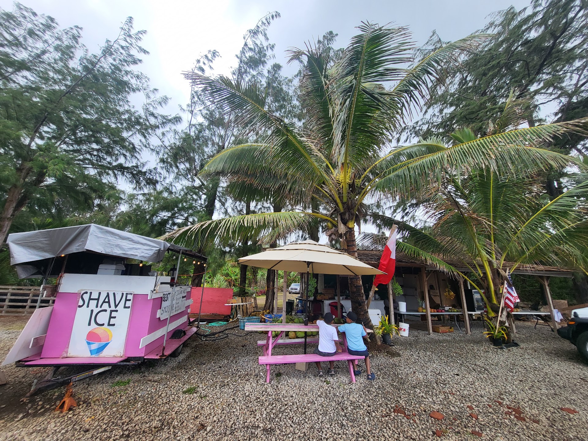 Best Mango Otai in all of Oahu for sure!!! The Tiki shop on the LEFT of Aunty Umu's Fruit stand has the BEST TIKIS AT THE BEST PRICE, and it's all locally owned by such sweet and kind people! This is the part of Hawaii only few see!! You MUST come here and at least try the Mango Otai!! The Otai is practically just blended Pineapple, Coconut and Mango, but it's super chunky and you kind of drink it and eat it, but it's spool fresh and good and healthy and I wish I was there to try it again...