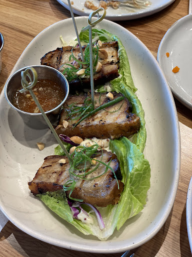 Overpriced. The restaurant is just inside the entrance to the grocery store. It has walls around it making it separate from the grocery store except you have to walk thru half the store to use the restroom. It seems like they are trying to make it upscale but it is falling short. The portions are small and way over priced. $20 for the Gnocci dish. It was ok. The Gnocci was pretty good, not a potato consistency and good flavor. The prawns were alright, the breading fell off easily. Not enough food for $20. The Ube pie was really gold with a coconut flavored cream topping. The donuts were super sweet and yummy. I ordered a drink, second something I cannot remember the long name, it was a regular height skinny glass. Looked fancy. I didn’t taste any alcohol, tasted a lot of ginger, $13...overpriced for such a small drink. It would be cheaper to get what you want out of the grocery store and picnic outside on the beach. I would not go back. If they want to stand apart from the grocery store I highly recommend a separate bathroom so you don’t have to dodge the crowd in the store. They take reservations and...
