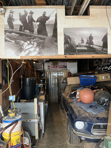 Enter below black-and-white photographs paying homage to Japanese fishers of generations past. Ink prints are drawn from imprints of local fish of all kinds — ranging from octopus to ahi tuna; color is added with expertly applied brushstrokes. Frames can be specialty made of local indigenous woods. Surf boards can also be modified with fish paintings on the underside.