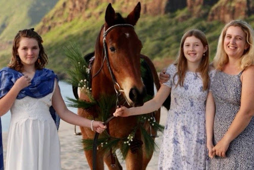 I honestly wasn’t sure what to expect. My littlest daughter is the horse woman in the family. I am a chicken farmer, she’s horses. We reached out to Nitya to talk about photos for Valentine’s Day for our family and if all humans would have to get in the horse or touch him or is it ok to have people comfy with horses do that but those who aren’t still be in the photo but not touch the horse. She said of course!! I wasn’t sure how it would turn out since half my family gets nervous around horses but you’d never know. The photos came out brilliantly. From the decorations on Kanu, the placement of the humans, the decorated sets and the skill of the photographers! We are sooo happy. Mahalo...