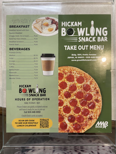 Despite the pizza mishap, I would still highly recommend the Hickam Bowling Center for a fun bowling experience and delicious chicken wings. Just be sure to steer clear of the pizza. Keep up the great work on...