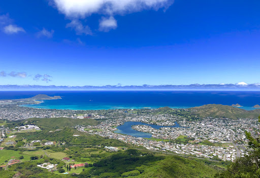 Olomana is a remnant of the Koʻolau caldera, the western section of which dominates the horizon towards Honolulu (see Nu’uanu Pali below).