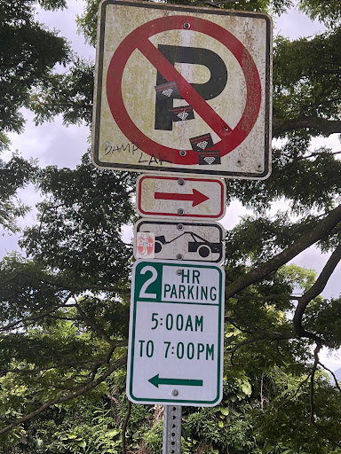 A cop hangs out and gives tickets to hikers for things like "obstructing sidewalk" (for having maybe an inch of bumper over the curb) and exceeding the 2-hour limit (even though this is the only parking at a trailhead leading to many miles of trails). Clearly a government supplemental income spot. Not that I'd want to come back to Oahu, but this kind of sealed the decision to never come back. Views are fine but easy to be had from multiple places without third-world...