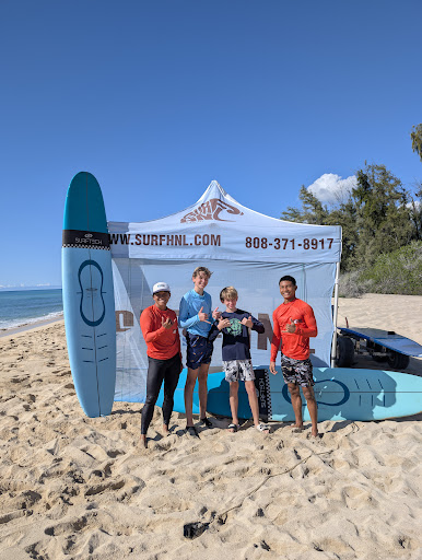 Read moreMy husband and I scheduled surf lessons with these folks during our honeymoon and we were super pleased with them. I'm not a small lady and I was worried about being treated negatively because of that so I looked for a place that was going to be kind and fun. HNL totally delivered. We had private lessons. Chase and David were great-super helpful, super friendly, and super knowledgeable. Their spot on the beach was easy to find and easy to park at. We were greeted right away with big smiles and we got geared up and on our boards fast. Waves weren't super awesome, but we knew that already because HNL had called us to tell us and to check and see if we wanted to cancel. Since we were first timers, we assured them we wouldn't hold Mother Nature's calm mood against them and we just wanted to be out on the ocean. I think the ocean was perfect really because it gave me a chance to get my balance and figure out how to paddle around. We had a lot of fun and definitely recommend it!I'm not a big reviewer-this is only the second time I have ever written a review for google reviews-so trust and believe I...