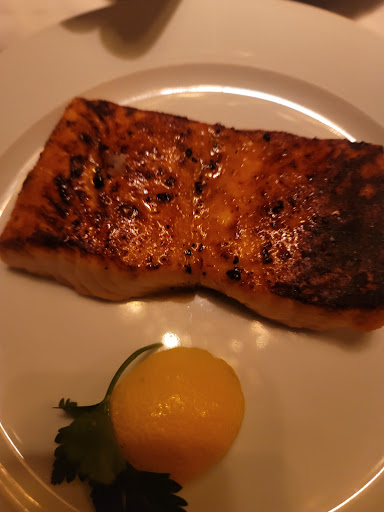 When you walk in, you're surprised because you're not in a restaurant. I assumed it was a multi tier restaurant that had a rooftop option, but I was wrong. The downstairs area is actually a design gallery for indoor and outdoor home furniture. While what I initially saw was nice, I was only there for the restaurant. Upon exciting the elevator you're exposed to a hidden gem of the establishment. With the ambiance created with enough lighting to still have an intimate setting, a central water fountain with waterfall lions heads, and upbeat music, it's definitely a great atmosphere. I did go at 7 pm, which in hindsight negates the fully windowed indoor seating area from what could be a magical sunset, however there was plenty of outdoor seating for conversations to continue after meals. As for the meal, I started with the shrimp cocktail, which was 6 large shrimp with choice of grated cheese and cocktail sauce, Dijon, and lemon as toppings. I had the salmon paired with the Yukon potato puree, and brocolini. I liked the brocolini, had a nice char with garlic topping, the salmon was cooked to perfection, but to me, the wonderful surprise of the meal was the potato puree. I literally could've had a double helping of that and been truly content. It was mashed potatoes on a silky level...
