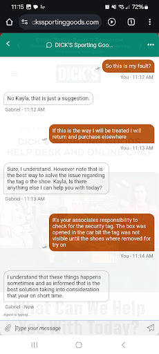 Read morePicked up an online order for Nike Dunks for my son's prom Thursday evening. We live 45 minutes away from your store. When checking with customer service their only suggestion is that I should have inspected the shoes before I left. Please explain how a security tag removal is the fault of the customer? I did open the box in the cat and the tag wasn't visible until they were taken out for try on. Now due to limited time I'm to drive back to the store in between work and my son's games tonight to try to correct this before Saturday. Which means leaving from work early. Losing money gas and time and all I get is a you should...