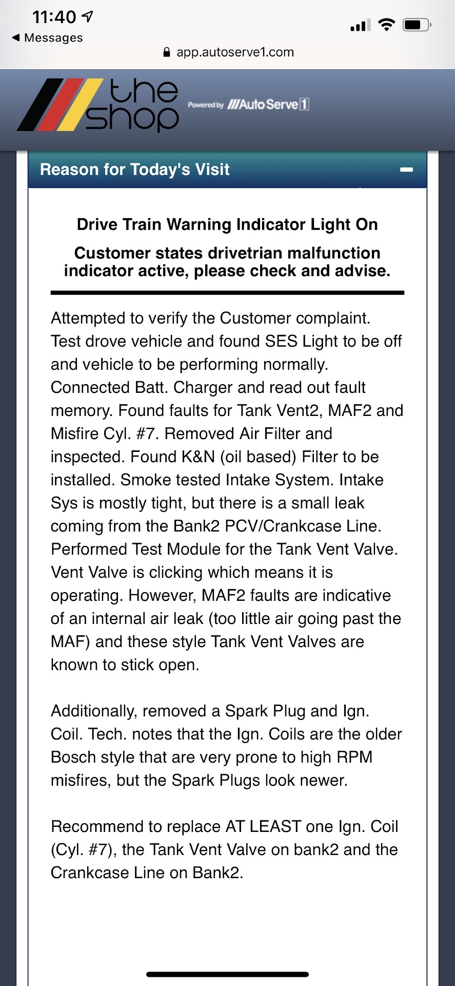 December 12th met with Irvin and he acknowledged he received the email but the system wouldn’t let him reply back and I guess a phone call is not protocol nor a text. He said it would possibly take two days for the mechanic to really check my car in detail…..