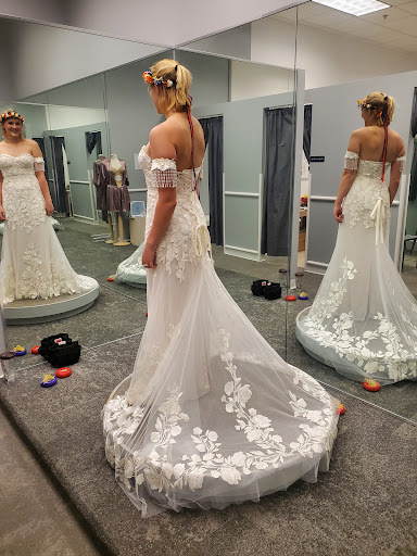 I came in for wedding dress shopping this was a huge day for me I had a lady forgot her name but she was Asian she had me and other girl right next to me where I think that could of been different due to this is my day and my appointment she was helping the other girl Lee then me they had the wrong sizes for me didn’t help with hints or let’s do this one she ended up getting mine and the other girls dresses mixed up!!! During trying them on my mom and made of honor and bridesmaids had to go find dresses for me due to her not helping me she was helping the other girl!!! Then I did find a dress my sister found and where was the lady that was supposed to be helping me noooo where to be found so we kept asking random workers to help finally we found Chelsea! And she helped us the rest of the time I asked the other lady to look at bridesmaid dresses she told us I have to make an appointment!! I made my dress appointment and got no help so why make a bridesmaid dress appointment…. Still had no help with that so my bridesmaids will be going somewhere else.. my dress came in I called 3 weeks later and they said it’s been in ok why didn’t I get a call! So my mom and I went to the store to try on dress and pick up thank god Chelsea was there and helped us sooo much she’s was amazing now if I need help from this place I won’t go unless Chelsea is working! I call before hand! So if any of u brides are going to look for a dress please call and ask for Chelsea to be your assistant trying on dresses she’s amazing and will help you! I could of cried leaving that place also my mom she got a dress all picked out another lady helped her told her this is a popular dress my mom had to order it so at check out they then told my mom that dress in discontinued! Was a headache thanks to my mom and wedding party to help me find my dress and Thank you Chelsea for everything u did to help us when we came back to pick up the dress.. let add some more first time I was suppose to pick up my dress they didn’t do what they were supposed to do… then today I go pick up my dress and the lady Veronica smelt so bad like BO I wanted to throw up!! I’m sooo happy I’m done dealing with this place so not go here for your wedding dress or anything else please take your money else where!!! I wish I did no room to even walk around in...