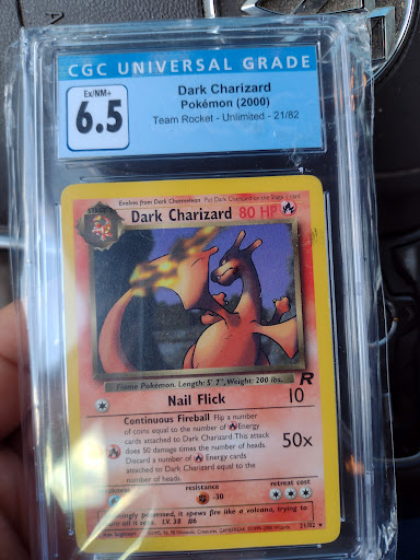 Read moreThis is my second time here, and after my first experience, I knew this was the place for us. First of all, the staff do an amazing job of welcoming you from the minute you walk in. The atmosphere is inviting and customer-centric. What I like about this store is the layout. They have a mystery box vending machine to your left. For $20, you can take a chance on a randomly graded slab. my second visit, I did see two graded slabs pulled from this machine. Next, you'll find an amazing collection of Funko Pops. Then a locked case that just had some really really cool items like Pokemon earrings, collectable Funko Pops, and I've even seen a few rare graded cards pop in and out of it. If you are into Magic the Gathering, they definitely have a great selection. They have some cases up front buy the register that are filled with Pokemon cards and against the right wall. The last case has Magic the Gathering cards. All prices are visible and clearly marked. We got a fair price for some duplicate cards we traded in. My son loves Team Rocket and owns none, well, except for today. He had an empty team rocket pack he sleeved and gave to my son for free. The fun didn't stop there because I asked him about a Team Rocket Dark Charizard and he said hang on. Next thing I know, I'm staring at one in a graded PSA 6.5. The price was fair, and my son now owns the most important card he's ever wanted and a chance to join the team rocket family. You are not going to find isles filled with sealed products, but what you will find is an opportunity to see Pokemon spread out in cases throughout the generations. This store and the staff are what set it apart from the rest. My only regret was not buying the evolution Charizard on my first visit because it was the reason...