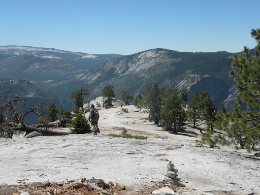 Took the hikers shuttle from the Yosemite Lodge in the Valley to Porcupine Flat with my eleven year old daughter and 17 year old son. Our plan was to hike down to North Dome, then over to Yosemite Falls and return via the falls trail back to the nearby Yosemite Lodge, which we did. Had supper at the Lodge Mess Hall, then hightailed it back to The Redwoods in Wawona and enjoyed a much deserved rest. Super hike, but looking back, I'd say a bit reckless on my part. We were not equipped to spend the night if need be, say due to injury, etc. No backup plan if something went awry. Always have a backup plan when hiking in the wilderness. Let people know the where and when of your intentions. Interestingly, we never ran into any other hikers until we made it over to Yosemite Falls. This hike took place in July of 2007, was a lot of fun, and an...