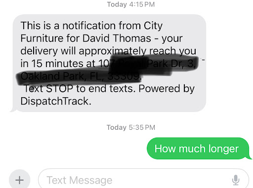 Read moreSo I placed my order on a Friday, with a promised delivery of the very next day {Saturday}. I commented to the salesperson that it was too good to be true that they would deliver the item the very next day. I was advised by the shysty salesperson that I would receive a text confirming the delivery window. Never got the text, instead received 3 phone calls from the delivery team explaining there was a glitch in the system and the item was not going to be delivered. My belief is when I placed the order and it was processed, the warehouse was closed so there was no one to pull the item and put it on the truck. Instead of acknowledging this, the company proceeded to attempt to reschedule the delivery for a weekday. Now why would I miss work to wait for them, when they didnât keep their word?! I then attempted to reschedule for 2 weeks later {when it was convenient for me} only to be told that the item may or may not be in stock. I then sent an email to their corporate office. I received a call from a young lady who didnât understand the problem, so I wished her a good day and hung up. She clearly didnât read the email. I eventually spoke to the shyster salesperson who only reiterated that the item would be in stock 2 weeks later and they would deliver it. Now throughout all of these exchanges, there was never an admission of fault on their part nor was there an offered discount. I mean my house was in disarray in anticipation of the delivery. So I am expected to live this way for 2 weeks? I eventually asked for a refund and was promised the receipt of the refund and cancelled order via email⌠guess what it never came. I drove back to the store to get a hard copy. Needless to say, this experience was one and never again. Companies donât acknowledge their mistakes anymore? They clearly didnât need...