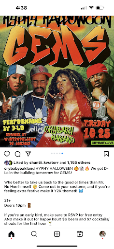 Read moreAfter coming to Crybaby opening weekend for DÄm Funk, I had to come back to see if it was really as good as it seemed that first night, and it hasn't disappointed. The sound system is crazy and you can tell the focus of the venue is on the music and the experience, not a lot of distractions or gimmicks. Every time I've gone the crowd is super diverse, positive, and overall it's an incredible vibe. It opened at the perfect time after a couple years of the pandemic, and it embodies everything that makes me appreciate Oakland. The lineup this summer is full of shows and events I can't wait to see, so I'll...