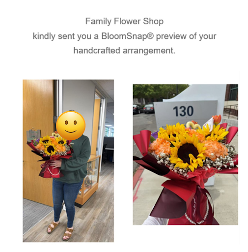 Read moreI had a great experience with Family Flower Shop. I ordered same day delivery and it was very orderly and straightforward. I also received email updates when the order was out for delivery and when the delivery was complete, which was great-- especially if you're sending flowers from far away! The delivery was to an office park and they didn't have any trouble buzzing in and making sure the flowers got to the right person. The flowers we lovely and carefully arranged with thoughtful touches and great attention to detail. I strongly recommend this flower shop and will be back next time I'm looking to send flowers...