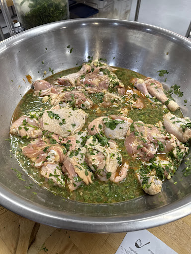 The classes began with a mini lesson and explanation of all we’d do, some background on the food itself, including quality and sourcing. The instructor explained each table activity and the recipes were on the table, and laminated All people were actively doing intricate things. I even learned to shuck oysters!