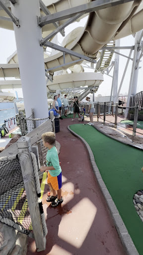 Read moreWe’ve golfed at all of the mini-golf sites on and off the boardwalk in Ocean City, and I’m sorry, but parts of this course are downright hazardous. There are various stairways you must use to go to some of the holes and most of these were covered in water with puddles on the walkways as well. This is dangerous. Water drips down from the water park features and the golf course waterfalls splash on some of the greens, making them waterlogged in places. Most of the challenges were in making sure you didn’t slip and fall as you went from hole to hole. The best parts of the course were the views of the ocean when you were at the holes up high. Overall, it wasn’t terrible, but be careful on this...