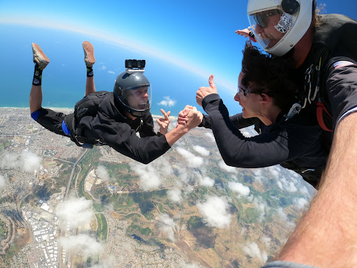 Read moreA word to the wise, do NOT make the same mistake I made when deciding to jump out of an airplane. DO NOT wear a collared shirt. As soon as we pushed out of the plane and began the freefall to 120 mph, the collar on my shirt started ferociously snapping at my neck like a red-hot tattoo needle. It was all I could do to clear & redirect my thoughts and mind to what I was experiencing, a spectacular view of San Diego from 13,000'....12,000'...11,000'!! I want to give an extra shout-out to my tandem jump guide Adrian Bond, whose calm, cool & collected attitude, and plain explanation and directions reassured the easyness and confidence I had going into my first jump. No lie, there were butterflies in my stomach as my legs were dangling out of the plane and I was looking down at San Diego from 13,000'. "Let's Rock 'n Roll!!" is what I shouted as Adrian asked, "Are you ready?" And, head first we rolled out. As the chute deployed, peace and tranquility immediately replaced the chaotic sounds and rush (and, that damn snapping collar peppering my neck) of freefalling back to earth. Then, a gentle glide to our landing spot with the hugest views of beautiful San Diego. I've done plane & helicopter tours, and neither is as exhilarating. This experience was our daughter's 18th birthday wish. I wish to thank everyone at Go Jump Oceanside for making sure it was safe and memorable for a lifetime! With 100% confidence I recommend Go Jump Oceanside to anyone who is considering checking off this bucket list activity. A couple other things to point out are how impressed we were with the check in process, the reception office, the waiting lounge area, the merch, etc. Watching the team at Go Jump Oceanside reload the chutes was really cool, too. This was a true 5 STAR experience for our family. Live life to the fullest; Go, jump...