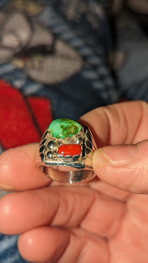 Read moreAmazing selection and very high quality silver and turquoise and many many other types gems and polished type rock jewelry. LARGE selection. Including Native American pottery and other decorations for household. Charming , cozy, and the 2 Ladies attending, I think are the owners or at least 1 were so attentive and knowledgeable to ALL there products and regions of silver and turquoise mines! Please stop and take a look. It's across from a amazing charming cafe type restaurant with excellent food! In a mini mall type setting! Going back today! A hour drive is worth it for sure. The ring is silver and red coral and turquoise. The region from was noted and from the south west and they told us the mine was, I think, 9 miles either way it's the largest in Arizona and has different color turquoise per region due to minerals both those were from same mine. Except coral. Kingman mines is where the turquoise is from shown. But, turquoise has gone up in price such as gold and silver so. It was stated on another website with info on the mines, that it went from $80 a pound to demand of $400. The owner(s)?, because we purchased 3 items, came down $40 on 1 and more on each of the others. Very impressed and excited about this...
