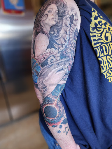 Logan is an amazing artist! He's done several large pieces on me, including full sleeves and a lot of leg work. The details and fine line work are top-notch. I'm looking forward to getting a large piece done on my back. His shop is very clean, he uses sterile equipment, is very professional, and maintains a comfortable environment. He is very good about offering advice and ideas for what you're trying to achieve for your art. I'm often stopped out in public by those who admire his work. He is definitely the person you need to see when you're looking for a fantastic ink artist!...