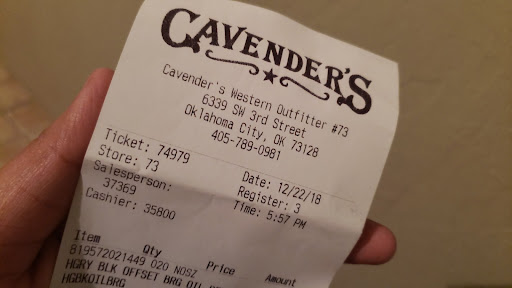 Read moreCavender's is one of my favorite stores! The selection for kids at this location is lacking. I've shopped there at least 6 times in the last 12 months. I purchase 2-4 pairs of boots/shoes most visits. I only purchased 3 items today.
