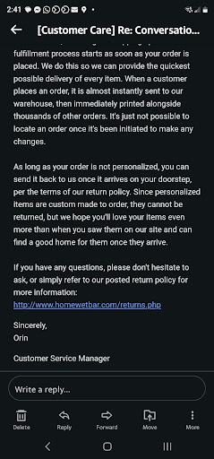 UPDATE: Homewetbar reached out to me and assured me they have provided additional training to their staff to better handle situations like the one described below, and they refunded me the shipping charges on the original order. What great customer service! As mentioned below, the product was already great so I've updated to 5 stars and will recommend this company to friends and family.