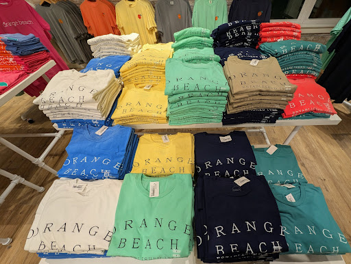 Holy cow did I hate this place. The cashiers were too busy popping bubble wrap and gossiping to greet most of the people who came in to shop, and the selection of clothing, while pretty diverse, is some of the most egregiously overpriced stuff I've come across. Yeah, I know Orange Beach is the frou-frou part of town and prices reflect that, but $150 for a freakin' T-shirt? You gotta be kidding me. Most of the "souvenir shirts" with the orange logo on the signage out front were cheaper, but $40-50 is not cheap enough for me to be a walking billboard for this particular store, sorry.