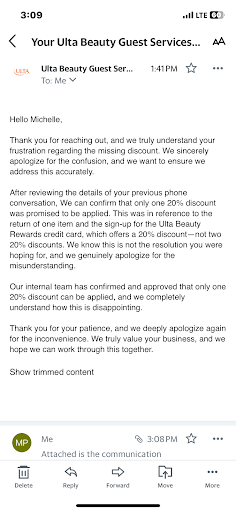 so it all started on 12/18/23 when my daughter (well i did for her) placed an order on the app (which my daughter is only 13) and she placed the order with just her name as the pick up person so before her order was ready for pick up, I put her dad down as an alternate person for pick up because my daughter is under 18 yrs old and doesn't have a state ID but does have her school ID. So when the order was ready for pick up my husband took my daughter to pick it up when it was ready for pick up and when they get there they get this OoOo so wonderful "Averie" and my daughter provides her with her school ID and she looks a bit confused so my husband explains she is not of age and doesn't have a proper state ID so my husband said she was going to refuse to give them their product until he said look I'm an alternate person on the account for pick up here is my ID and proceeds to give her his ID, well let me tell you how this lady had the nerves to open the SEALED bag and take the stuff out, my husband said excuse me why are you opening it, its sealed? she proceeds to say to make sure its the right thing, well that's why its sealed. Ok lets go to today now 12/26/23, my husband takes both my daughters this time to purchase stuff, well they make their purchase and go into Sephora well my daughter realizes after Sephora that she got the wrong mascara so my husband proceeds to take my girls back to EXCHANGE the mascara she bought 20 mins ago. They get there and she grabs the correct masacara (same brand, same price) and goes to check out and well well well they get this lady Averie again. my daughter proceeds to explain that she needs to exchange it and asks my daughter for a phone number, my husband says no because he doesn't want to provide that and is NOT obligated to provide that so she then goes well i need to talk to the manager.( FOR WHAT???? I HAVE THE RECEIPT) and I'm only exchanging so the manager comes over and Averie explains that my daughter wants to exchange it and the manager proceeds to asks to my husband again for a phone number and my husband says no, so she then proceeds to mumble something and walks away so Averie then says to my husband again phone number and he says no we don't have an account here and she was refusing until my husband said look on your receipt it says "RETAIN RECEIPT FOR RETURN" and she then says again i need to ask the manager... like what is wrong with these people?!? seriously!!!!! WE HAVE THE RECEIPT AND WERE THERE 20 MINS PRIOR AND THE MANAGER IS THE ONE THAT CHECKED THEM OUT.. so the manager comes back and starts AGGRESSIVLY typing in front of daughters that they got scared and said daddy forget it lets go.. REALLY ULTA!!!!!!!!!!!!!!!!!!!!!!!!!!!!!!!!!!!!!! but nope my husband did not give and she ended up giving my husband the refund so my daughter can purchase the right one, still after all that still spend money there... AND UPON WALKING OUT MY 13 YEAR OLD HEARD THE MANAGER SAY "IM STRESSED ENOUGH" AS IF WE DID IT.. DO YOUR JOB RIGHT! I WILL BE GOING AS HIGH AS I CAN!! THIS IS WRONG AND IM SPREADING THE WORD...