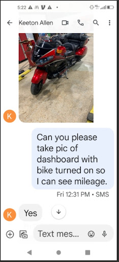I tried to buy a Goldwing from this dealership. At first, everything seemed normal. I called around noon from CA and asked for some pictures. By 12:27pm Keeton sent me 4 pics. At 12:31 pm, I told him the pictures looked good and asked for one more showing the miles. At 12:35, I get a pic of the dashboard. At 12:41, I text Keeton that I want the bike and for him to call me. So, in less than 15 minutes after seeing the pictures, I am buying a Goldwing. So I thought.