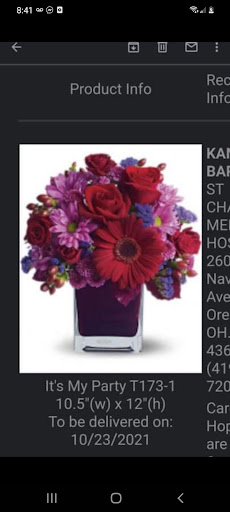 Read moreWe live in Texas and I needed to order flowers for my Uncle's funeral in Ohio. I found Beth Allen's Florist on the internet and looked at their website. I ended up giving them a call to make sure I could get a blue and white arrangement. I spoke with a lovely young lady named Amanda who was more than accommodating. After I explained what I wanted she asked for my number, so I didn't have to stay on hold while she spoke with her manager to make sure they could arrange for what I was requesting. She called me back right away and assured me the arrangement would be blue and white and beautiful. One of my cousins sent me a picture and I couldn't be more pleased!! I highly recommend this florist! Thank you Amanda for all of your help and...