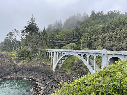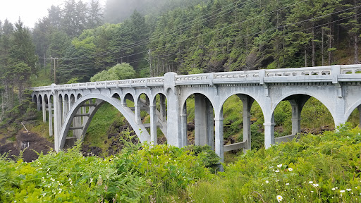 Really amazing overpass with classical features of the West Coast highways on the coast. There is a pullover spot right after passing over it when going north-south from which you can take pictures and admire this part of the coast. I have been here a couple of times and it never stops from taking my breath away. Very little traffic since is apart from highway 101 after taking a very unimpressive exit. This bridge is at the start of one of the most amazing sections of the Oregon Coast. Sheer cliffs and wild waves battering the mountain, with huge trees, tons of vegetation and fast rolling clouds at times. Not to mention the wind/rain. It doesn’t get any more astonishing for a setting where the land...