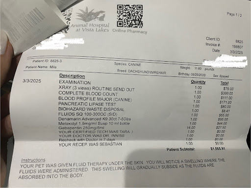 All in all, I am so disappointed in the lack of care my animal received at Animal Hospital at Vista Lakes. The lack of time spent with my dog as well as the fact that they seemed more interested in money than my animal's well being will is why I felt the need to write this review, so perhaps others will not make my mistake and instead bring your animal to a hospital that is much more personable, cares more for your animal than money, and will do all they can for your family.