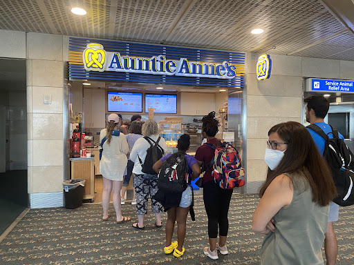 Stood in line for 15 minutes and when I got to the register I ordered mini dogs to which the cashier said it would take 25 minutes to make. I told her that was fine since my flight wouldnāt be until later that evening and I had time to wait. She gave me a āreally?ā look and didnāt press anything on the computer. So I asked āare you just not wanting to make them?ā to which her response was āno we donāt want toā. I worked at Auntie Anneās for 2 years. I know thatās the most complicated order but It is not that difficult to make mini dogs. Also during my visit the lady handling the dough had gloves on and stopped what she was doing, she touched her braided hair and put it in a pony tail and went back to touching the dough. No glove replacement or hand washing. Very unsanitary. Glad they refused to...