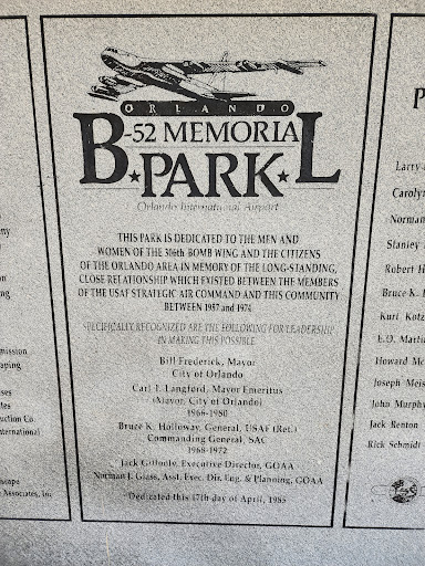 Read moreVery nice – hard to get to. This is a hidden gem of a B-52 display nestled in the northwest corner of the Orlando airport. It is a little difficult to get to and has limited parking. The day that we visited the grounds were well kept. The plane looks well restored and maintained. There is a building in front of the plane that allows for a good place for observation and picture taking. It is a good place for B-52, WWII and aviation...