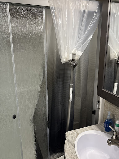 The bathroom was a decent size but the shower was door was broken with a poor makeshift solution. Cushions were ripped in some places as well. We also had the fridge turn off randomly twice during our stay, ruining all of the food we had purchased and repurchased after the first time.