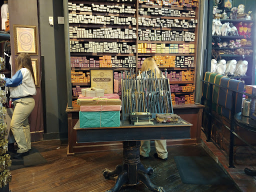 To be honest, this souvenir shop actually surprised me a lot. As I Harry Potter fan, I was planning to buy all my stuff at the Wizarding World, but man, there was so much stuff in this shop! A LOT of the items found in Hogsmeade and Diagon Alley can be found at this souvenir shop. The others can probably be found in the souvenir shop of Universal Studios Florida. There a lot of themed stuff so if you missed anything while in the parks or changed your mind when leaving, this shop will absolutely SAVE you. It is huge and you should definitely check it out. The cash register is outside though, which is kinda weird if you ask me. For Harry Potter fans like me: know that the HP section is HUGE, I am pretty sure that is it their biggest section. There are scarves, robes, mugs, pins, plushies, candies, wands, replicas and way more! Honestly, most of the stuff that is sold in the parks. There was even a discount (on the scarves I believe? Or something like that) which was not in the parks at the time I went, so it is definitely worth checking for discounts too. Other than that, the prices are the same as in the parks. Anyways, I...