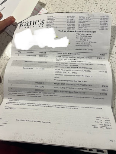 Read moreJamie McClune Plum doesn't recommend Kane's Furniture (5112 E. Colonial Drive, Orlando, FL). 21m · Shared with Your friends Friends On the afternoon of March 11, 2021 my husband and I walked into your beautiful Kanes Furniture Store at 5112 East Colonial Drive in Orlando, Florida. We were promptly and courteously greeted by Sleep Specialist, Mr. Jeff Peterson. Mr Peterson was very knowledgeable and helpful in our search for a new bed. We purchased the Delano Plush King Pillow Top with Advanced Motion and Adjustable Base. The bed was delivered on March 16, 2021 and we are very pleased with this purchase On the same day we purchased the bed we informed our Sleep Specialist, Mr. Peterson that we were also interested in buying a bedroom set. Mr. Peterson took us on a tour of all the bedroom sets in the store. When we turned the corner I faced with the Most Beautiful Bedroom Set I have ever seen. I fell in love with it the moment I saw it. My husband insisted that it was too expensive for us, but I would not be deterred. I simply had to have that gorgeous bedroom furniture. We argued over this issue for quite some time and after I offered to dip into my savings account to partially pay for the set, my husband finally agreed to the sale. I was on cloud nine and we proceeded to pay for the bedroom set in full. We were informed by Mr. Peterson that due to the Covid Crisis that the bedroom set could not be delivered until the month of May. My husband and I readily agreed to this delivery time as we understood the problems that Covid has caused the retail business. We informed Mr. Peterson that we would be moving our family to Colorado in June of 2021 and that May would be fine Here the story goes quite sour I'm afraid. I contacted the Kanes Furniture Store a few days ago to get an update on the delivery as I am anxious to get my new furniture. We had been waiting 2 months and was looking forward to the delivery. It was at this time that I was informed that the delivery date had been pushed back and that the furniture would not even arrive at the warehouse until sometime in June and delivered the end of June or early July. Needless to say I was totally devastated by this information. The Customer Service Representative at the store told me she would make some inquiries and speak with the Store Manager to see if anything could be arranged. I was told she would call me back within an hour or two. I did not receive a call back that day, nor did I receive one the following day. This afternoon my husband and I drove back to the store and spoke with the Customer Service Representative. At this time she reiterated the information that we would not get our furniture in time for our move to Colorado. We asked if it would be possible for us to purchase the floor model that they have in the store and was told that option was not available to us at all. Next, I inquired if there was anything at all they could possibly do to help us obtain the bedroom set. She did an inquiry and said that there were 250 orders ahead of our for that particular set. To say the very least, my husband and I were stunned by this information. Why, oh why would your company sell furniture that they cannot deliver to their customer? If the items are not in stock then the customer should not be sold the merchandise. Kanes Furniture should tell the customer, "I am sorry but that bedroom set is not in stock and we do not know when it will be available". I am thinking that is very close to the borderline of Fraud. Nonetheless, it is very unethical and it has been an absolute heartbreak for me. We were more than happy to wait 2 months for our furniture because we loved it. It is supremely unreasonable to expect a customer to wait 4 months for their paid...