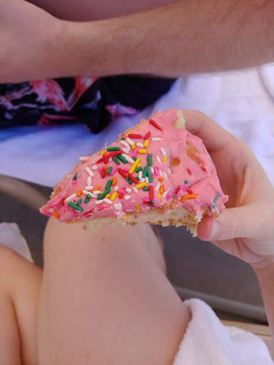 I wish that this shop's design was more accurate to the series, cause apart from the colours, it doesn't really look the same. Other than that, it is a pretty nice Simpsons souvenir shop. They sell mugs, t-shirts, slippers, Duff beers, bacon chocolate and way more, but most importantly: the huge pink donut from the Simpsons! It was so big that we ate it like a cake. It tasted like a very regular donut, good but nothing special. Nonetheless, I thought that the merchandise in this shop was very fun and interesting. Someone who loves the Simpsons will definitely find many...