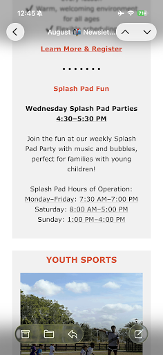 Read moreIt's brand new, what to ask for in a gym; discipline and a regiment of luxury along with the great community of the Cannery surrounding the area. Swimming for the kids, that are a treasure. Life guards provided in a 3' pool. Parents required of course and badges after passing a swim test for the young ones, in order to swim in a more refined department of lifeguard monitored swimming. Have fun!! Sunshine and cool swimming pools. Enjoy! Please get the 30 spf, protection,. rubb on checks, foreheads, ears, and a hat or put a bit on the top of my egg noggin. and shoulders, plus my back. NO lobster bisque for the kids or adults please. Have a Wonderful experience. The locker rooms are to die for, marble Corian, cool tile flooring,. Hot showers, safe environment, Changing rooms for familys, all amenities provided,. liquid regenerator of your choice, plastic easily accepted, slide card, count to 10, it will prompt you to " make a selection". kids are here to stay, many areas of expertise here, monitored by many at the same,. like for real cameras and staff are everywhere watching over the precious ones, while they play real time interacting, physical and all senses games. Let;s get into the community YMCA. Leonard & Marjorie...