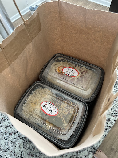 When picking up my meals, they’re given to me in a brown bag. This is my second week, and before entering my apartment, the bag broke. Thankfully, the containers didn’t open, but the bag is extremely weak. Anything frozen or cold makes the bottom of the bag break. I wish they had a better bag system because it’s frustrating. Even though I’m being as delicate as possible, it still breaks.