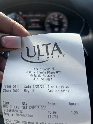 Ā Ā Ā Read moreWorst experience ever got there at 2:00 pm for my appointment with Nicki at 5:30 I was sitting in the back waiting for Nicki while she was with another customer and sent 2 other stylist to complete the process that she could not achieve. If you donāt have the experience to accomplish the desires of your customer donāt humĆllate them buy tossing them to the curb for somebody else to clean up your mess extremely unprofessional. Asked to speak to the supervisor, she never gave face.Ulta may have a lot of cosmetics, good hair products and even a big variety of perfumes but this Ulta has the worst customer service Iāve ever seen and would not recommend it to anybody visiting Orlando and staying by the airport. Ladies you know your hair and you know what works for you donāt allow this incompetent salon establishment insinuate they know whatās better for your appearence. Nobody is doing you a favor your paying good money for your service. As far as Iām concerned all I got was a bottle of water that I paid $157.00 for. I know thatās not an astronomical amount of money for your hair but for a bottle of water itās highway robbery cause I never got the service that you expect with the personal care of your hair and if this Ulta does not understand that than they should remove the salon from this location. All I asked for was toning the gray streaks in the front of my face nothing else no routes no cut I didnāt even get a full wash, unbelievable!! This is the 2nd or 3rd time Iāve been there, NEVER...