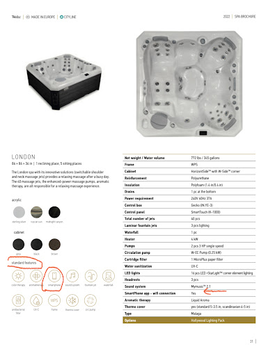 Fast forward to today when I finally set-up my hot tub (electrical was finally set-up)… I was under the impression that my spa had WiFi remote control capabilities, but I don’t. This whole process was too detailed and long for me to find an important detail like that out after install. I sure wish the sales team was more transparent and clear during the sales process. When I called yesterday to express my concerns on the WiFi capabilities not working I was told it wasn’t included and that’s why it wasn’t working. I was shocked and confused, so they offered me to upgrade to get the WiFi control added for $300. Sorry, but I just spent a fortune on a huge project and don’t feel like I should get nickel and dimed. That should have been clear during the sales process. Truthfully, they should have offered to add it to my spa at no cost, after all, when I bought this model I was under the impression it was included (as reflected in the picture below shown as a standard feature to this tub).