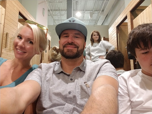 She went in the dressing room to try on some clothes, and the baby started freaking out. I'm like, little dude, come on, chill, you're in like the coolest place in Orlando.