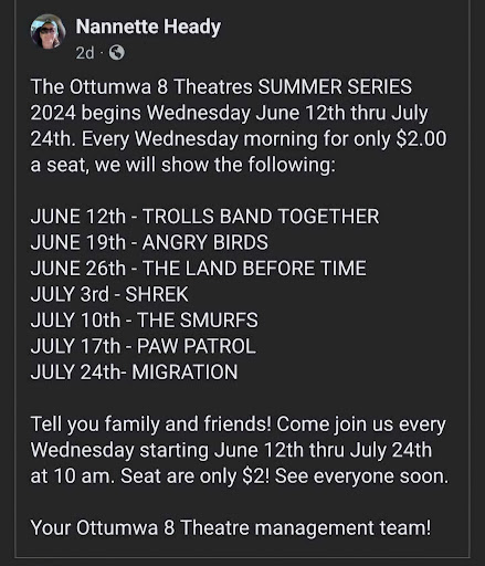 IF YALL HAVENT BEEN TO THE $2 MOVIES YALL SHOULD GO NEXT WEEK AND EVERY WEDNESDAY AFTERWARDS!! Absolutely love Nanette who basically runs everything! Her advertising the $2 movies for the summer has really improved so there was such a HUGE turnout today!! And the movie rooms themselves are always so clean and smell so good! The movie screens are always working and there's never any problems anytime we go! Except for that darn red slushie machine, but my kids aren't picky and love the blue slushie too, they just sometimes want both but are okay. Everyone in the theatre's are normally pretty good and quiet and we've never had any problems. Always good popcorn, nachos, never watered down soda, check in is ALWAYS SO EASY AND QUICK. Recommend to...